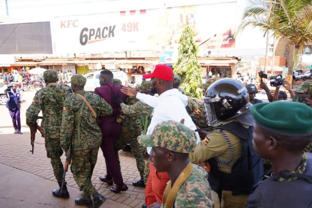 “After raiding our headquarters to prevent us from addressing the country on Uganda’s 61st ‘independence’ day, police and the military have proceeded to arrest party leaders and supporters. The Secretary General David Lewis Rubongoya, Spokesperson Hon. Joel Ssenyonyi and scores of other comrades are now detained at Kira Road and other Police Stations around the city. We owe it to ourselves to resist this impunity!,” Bobi Wine posted